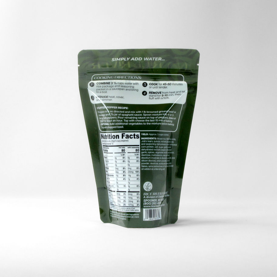 Naturally gluten and allergen free, Rice River Farms Kale & Grain Blend is a savory blend of rice, lentils, quinoa, kale and other vegetables complimented by our bold Garlic Peppercorn seasoning. Full flavored and perfect as a base for your favorite wild rice soup or as a side dish for any protein!